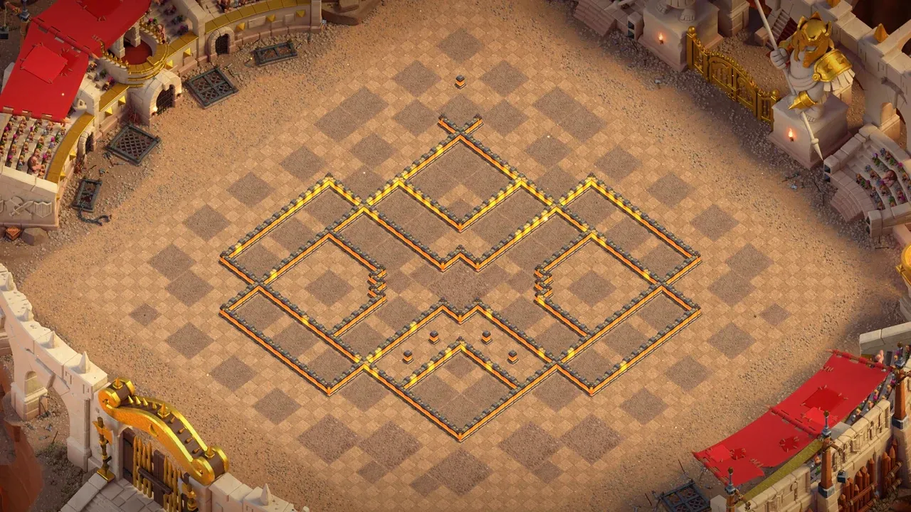 - Diamond Design - Symmetrical diamond design with tricky pathing for war defense