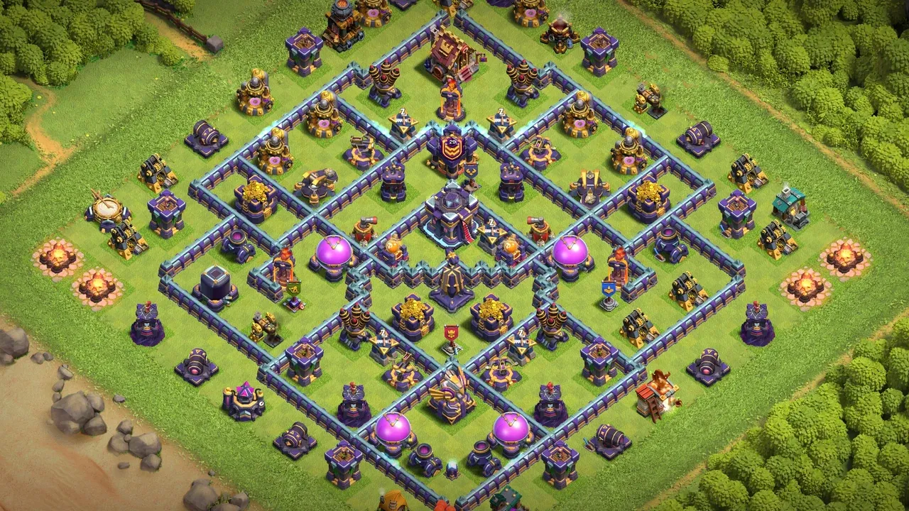 - Central Monolith - Monolith in center protects Town Hall and breaks down large troop groups