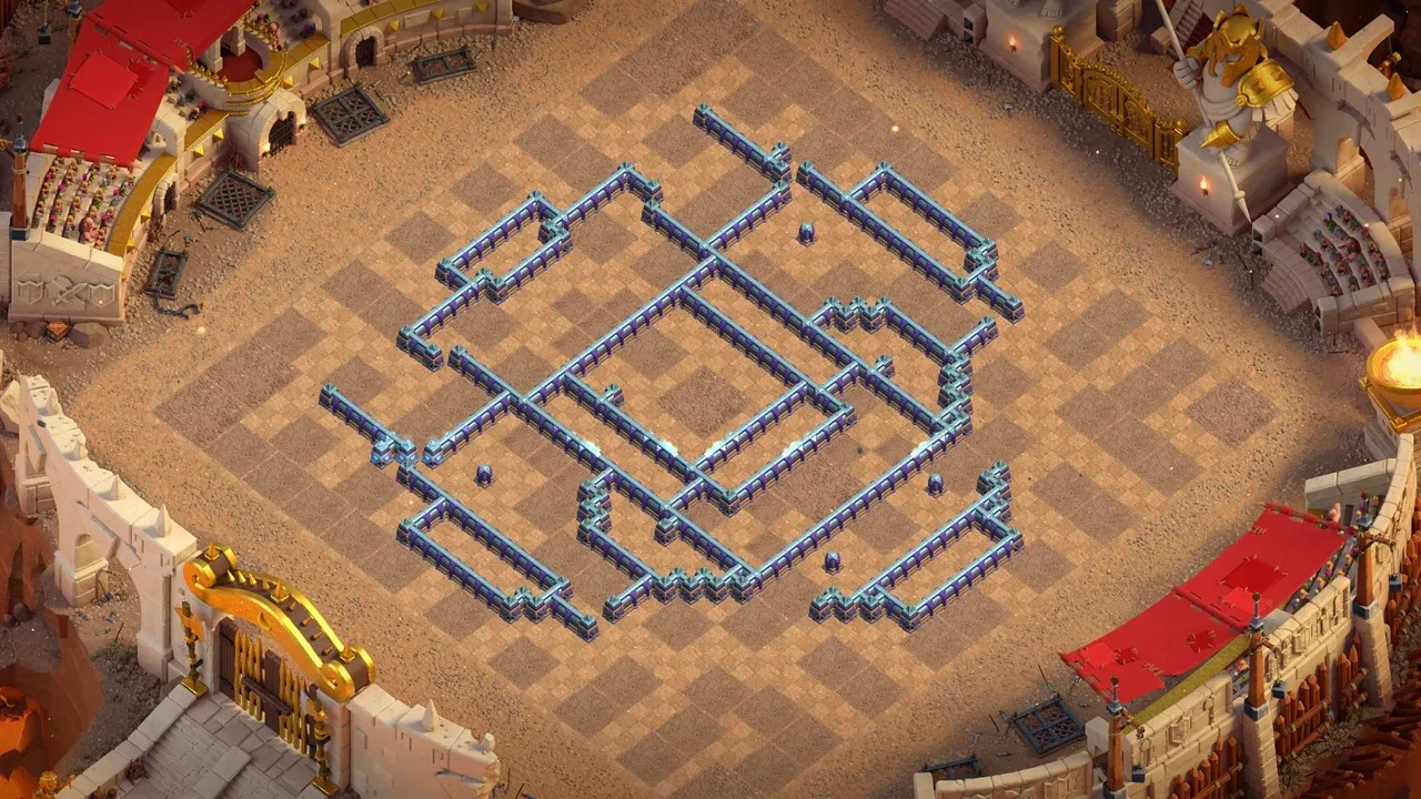 A: Layout creates no clean entry points to core. Attackers must commit multiple spell casts or lose significant troops just to breach the center.