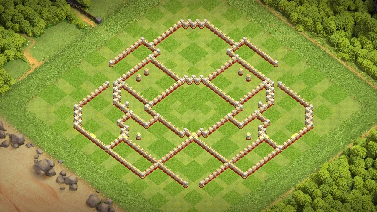 - Diamond Layout - Diamond-style design creates unpredictable troop pathing and protects core storages