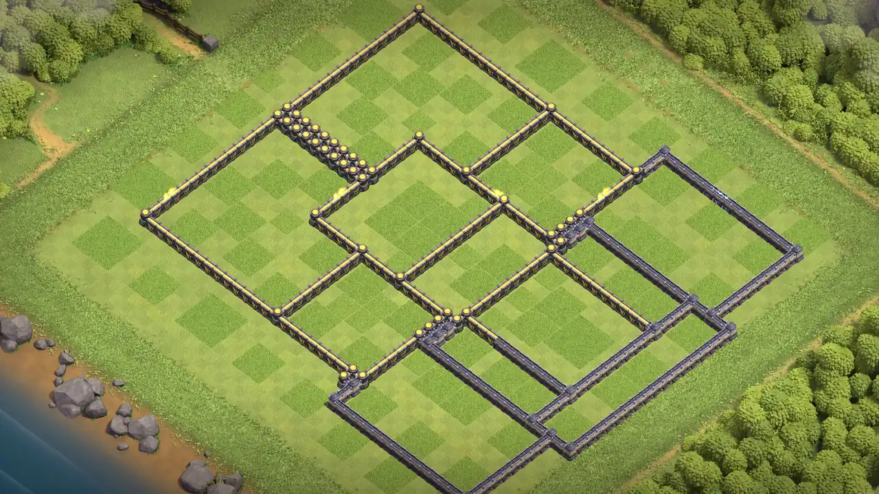 - Edge TH with 5 Tile Gap - Town Hall at edge with spacing prevents Thrower snipes