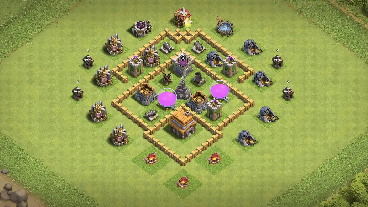 - Isolated Town Hall - Town Hall sits inside walls unreachable from outside, forcing attackers to break through multiple layers