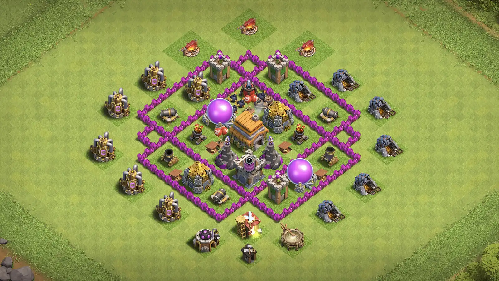 This town hall 6 farming base make for anti-3, design by secured storages inside, with traps to counter both giants and balloons.
