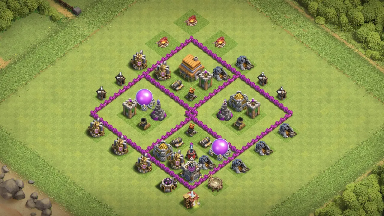 Find the best Clash of Clans Town Hall 6 bases for farming, war, and CWL. Each base is tested for the current meta and includes recommended Clan Castle troops. One tap to copy the base link directly to your game.